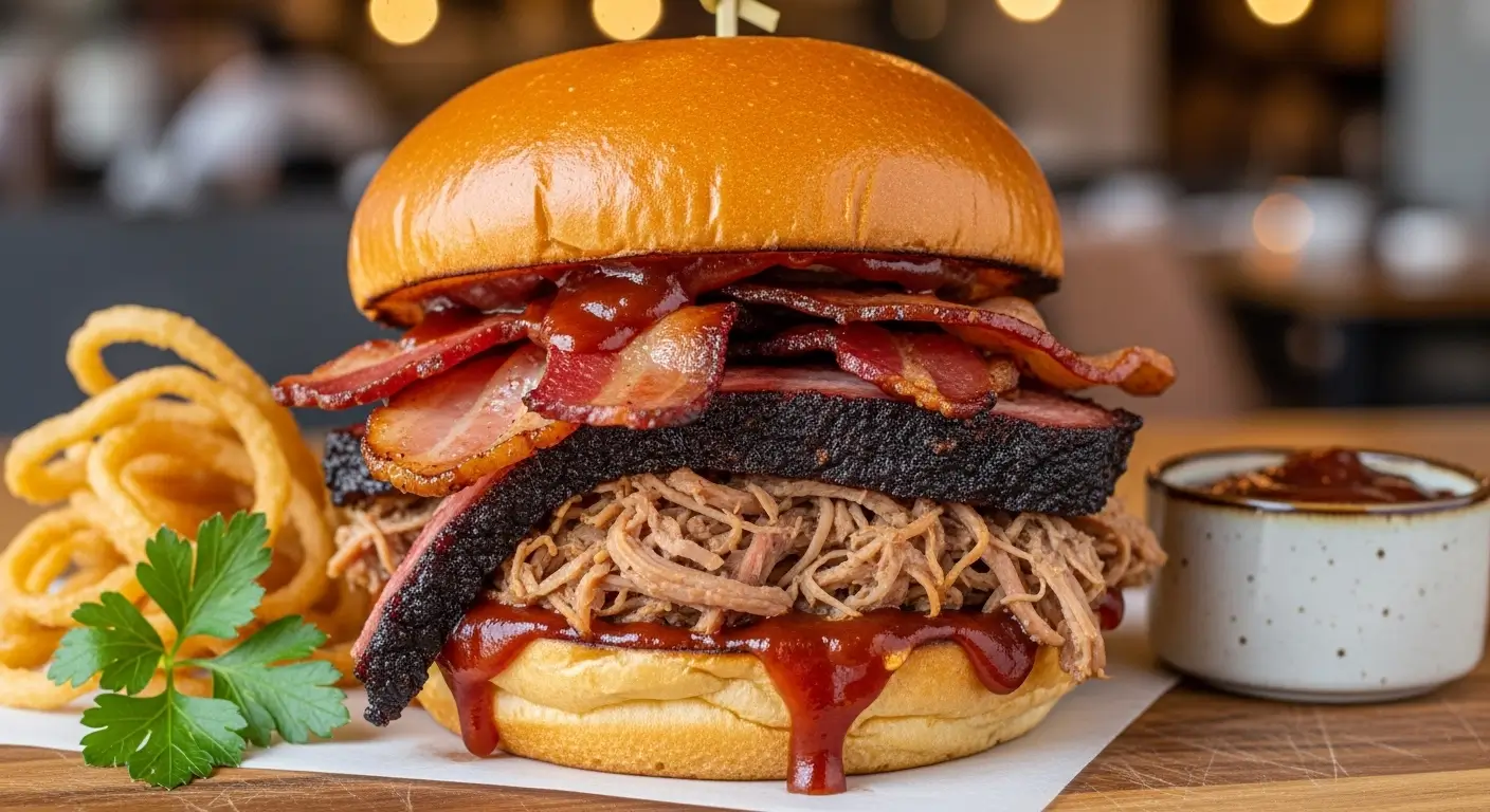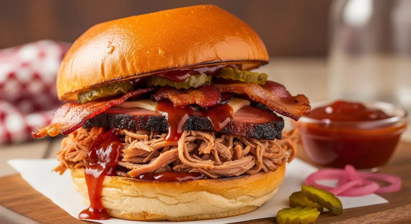 The BBQ Pork with Bacon Sandwich is a savory, smoky delight that combines tender pulled pork with crispy bacon and a tangy BBQ sauce. Perfect for BBQ enthusiasts and sandwich lovers, this recipe offers a perfect balance of flavors and textures. Whether you’re cooking for a family dinner or a weekend BBQ, this sandwich will quickly become a crowd favorite. Let’s dive into how to create this delicious and indulgent sandwich.