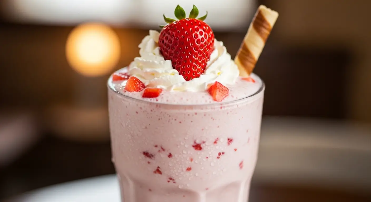 Fresh strawberry slices or crushed freeze-dried strawberries make great garnishes. A sprinkle of chocolate shavings or small sprinkles can add extra flair. A wafer or cookie on the rim adds texture and decoration. Creative garnishes make the milkshake visually appealing.